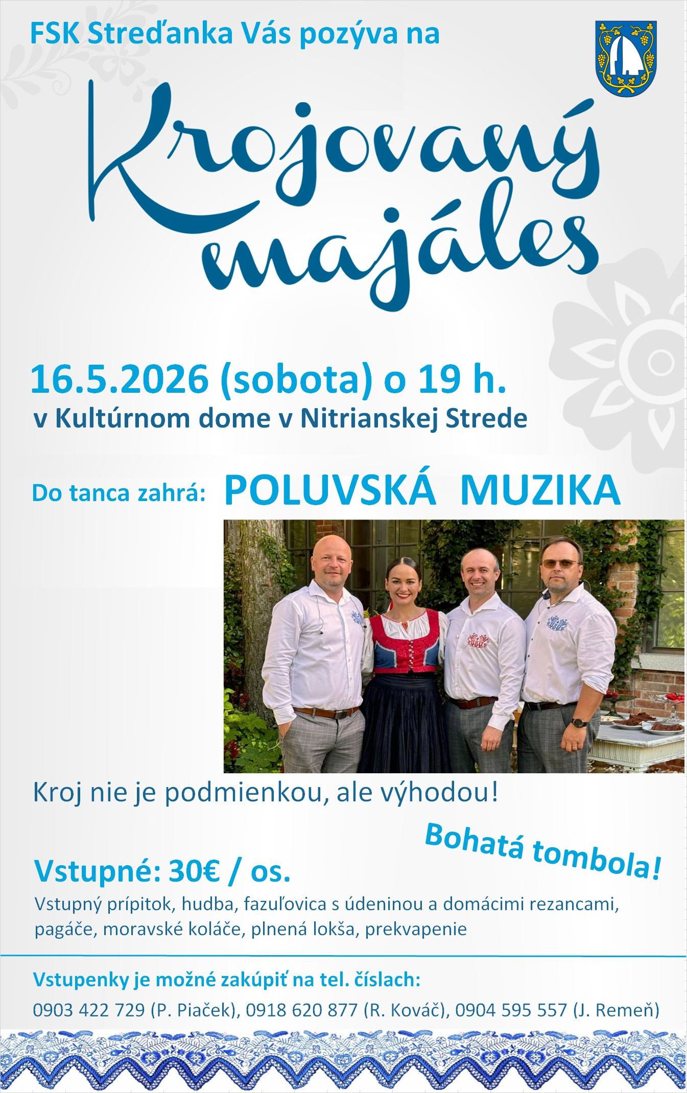 FSK Streďanka Vás pozýva na Krojovaný majáles 16. 5. 2026 od 19.00 hod. v Kultúrnom dome Nitrianska Streda.