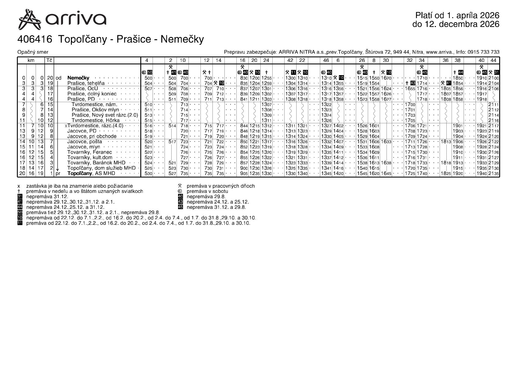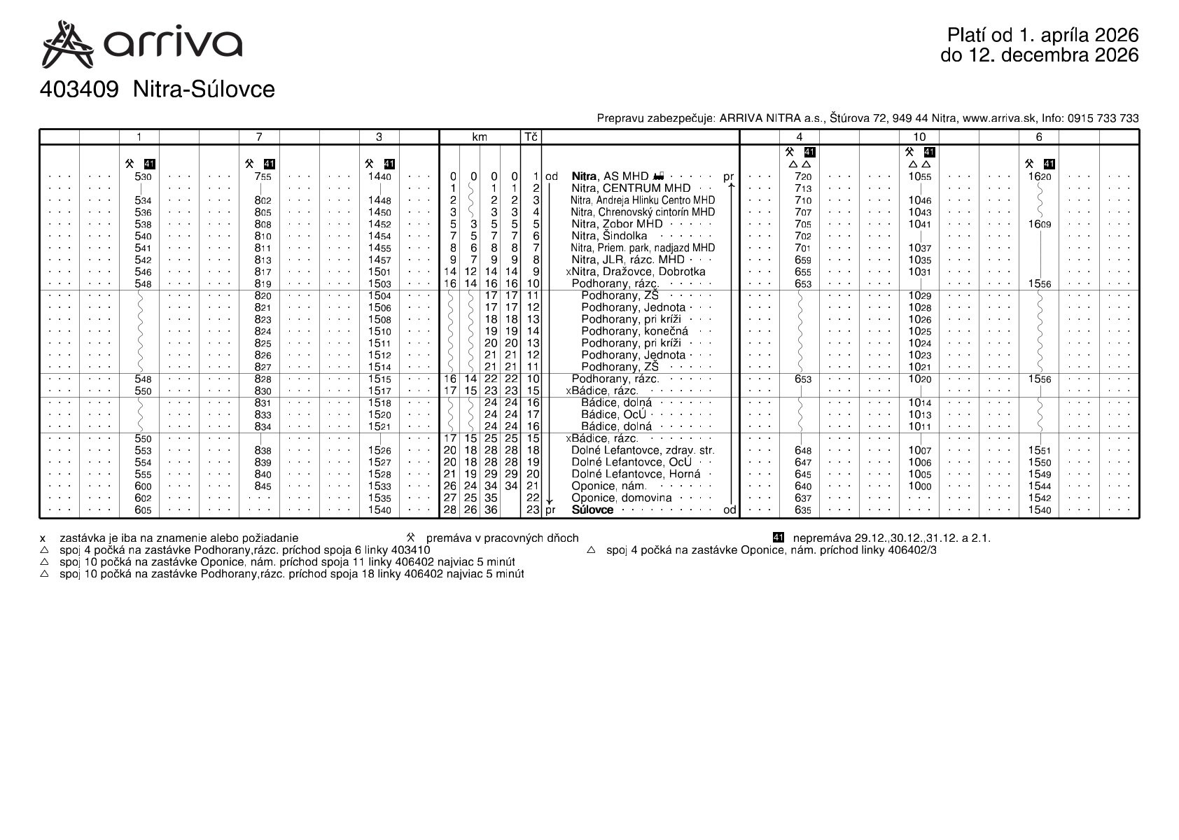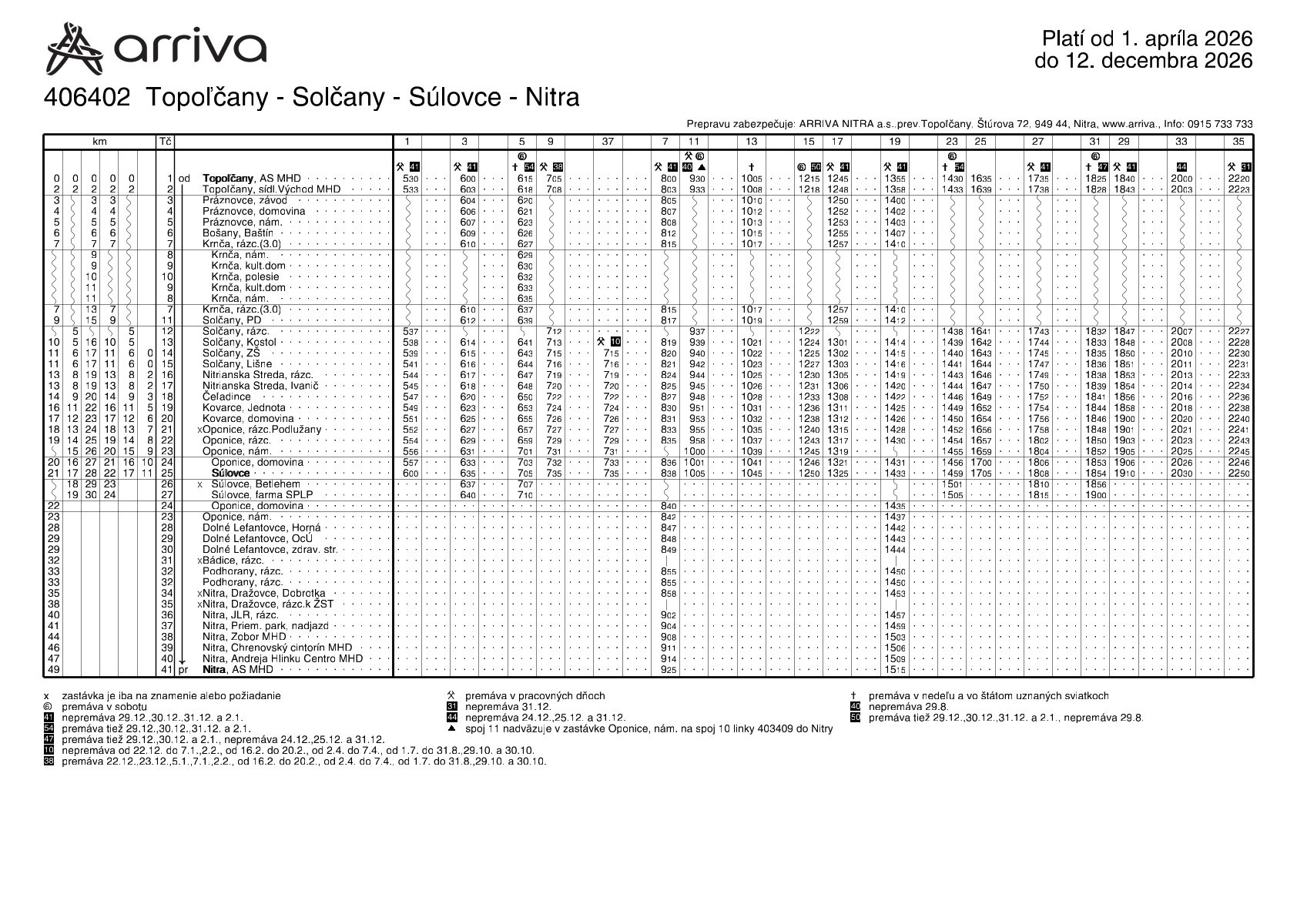 Zmeny cestovného poriadku s platnosťou od 1. 4. 2026 na prímestskej autobusovej doprave ARRIVA NITRA a.s.