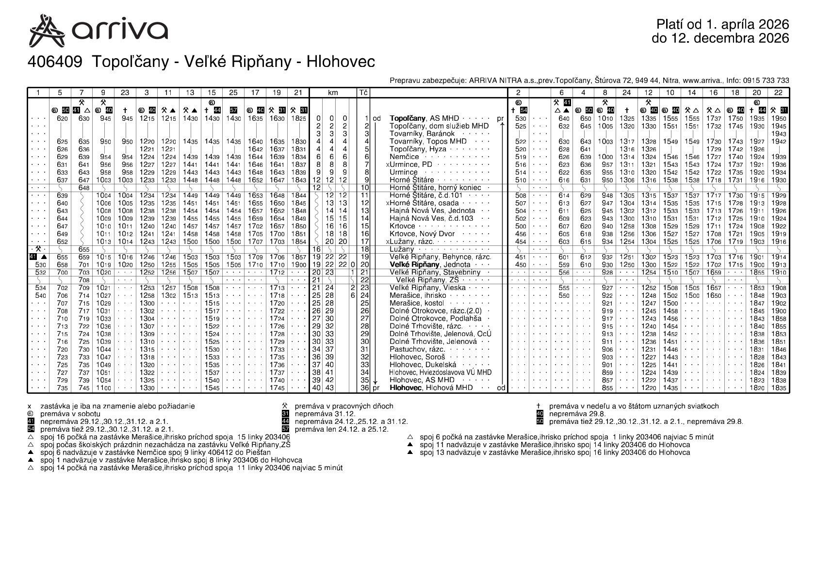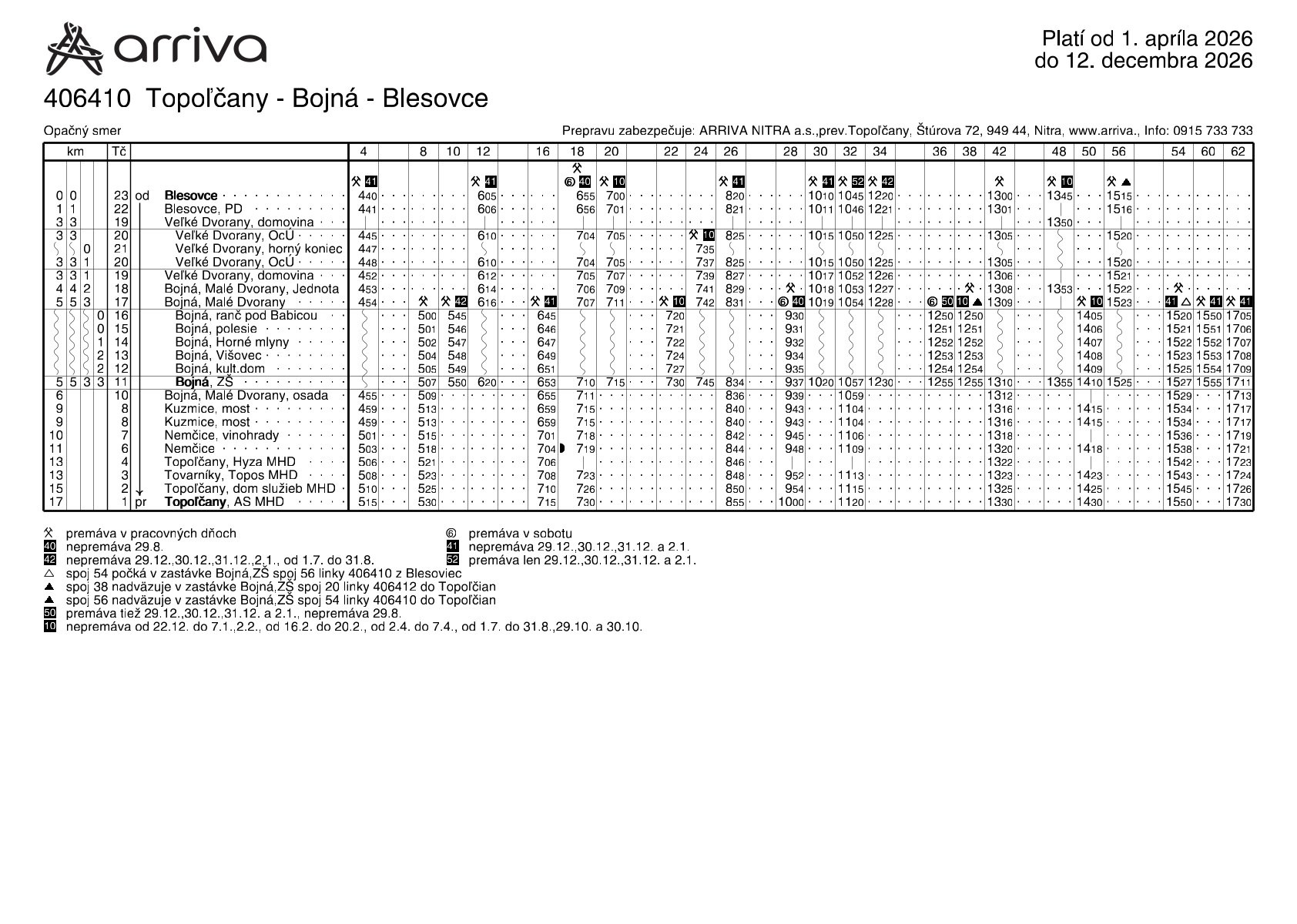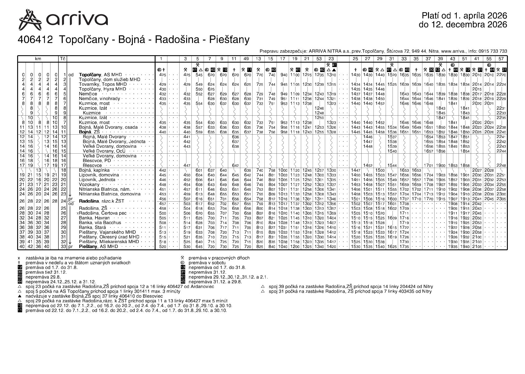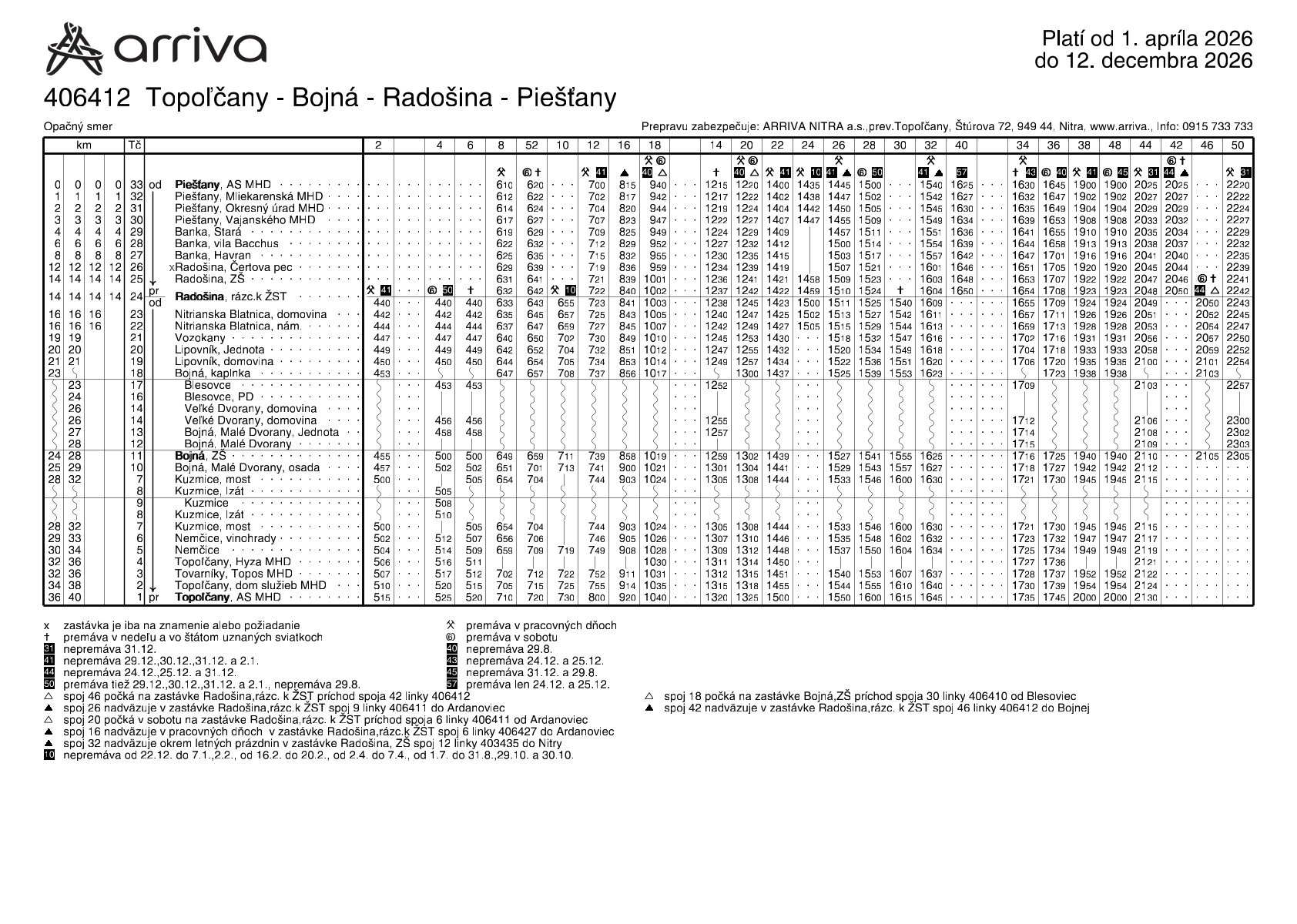 Zmeny cestovného poriadku s platnosťou od 1. 4. 2026 na prímestskej autobusovej doprave ARRIVA NITRA a.s.